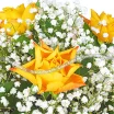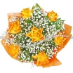 ЛЮКС: роза оранжевая/желтая - 15 шт., гипсофила - 7 шт., фетр оранжевый. Примерный диаметр букета 40х40 см.