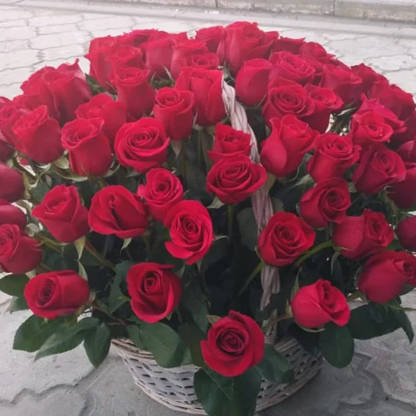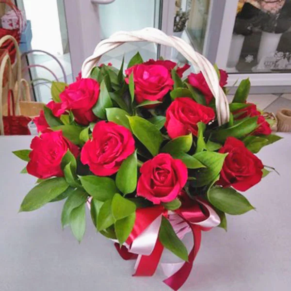 Я заказывала эту корзину красных роз с доставкой на дом. привезли вовремя, очень удобно что оплатила все картой на сайте заранее, и все привезли к точному времени! Супер!