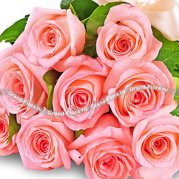 11 роз: роза розовая - 11шт., упаковка, лента.