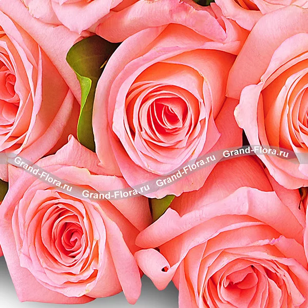 21 роз: роза розовая - 21шт., упаковка, лента.