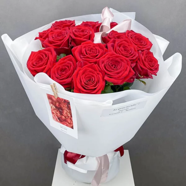 Букет из красных роз в современной сдержанной упаковке - это отличный цветочный подарок по любому поводу. Розы имеют длину стебля около 60 см. а оформление в светлую упаковку придает букету естественность и изящество. Данный букет отражает самые последние модные тенденции во флористике, а именно трендовая упаковка и классическое исполненине. Безошибочный подарок для любимого человека, котороый подарит вашему получателю массу положительных эмоций.